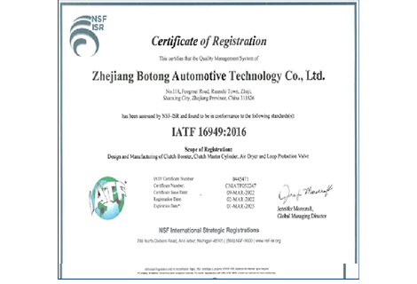 浙江博通汽车科技有限公司成立于2015年。专业生产:汽车离合器操纵系统、空气处理单元、ABS、EBS、气制动阀。公司位于浙江省店口工业园区,现拥有2万多平米的多层厂房。公司技术成熟,经营体系完善。